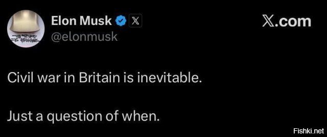 В Британии уже почти халифат: там скоро будут жить по шариату, а не по «правам человека». Или действительно начнется что-то серьёзное, о чём пишет Маск.