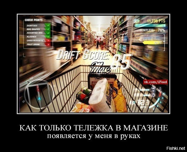 А впереди бабулька полулежа на тележке полки сканирует)))