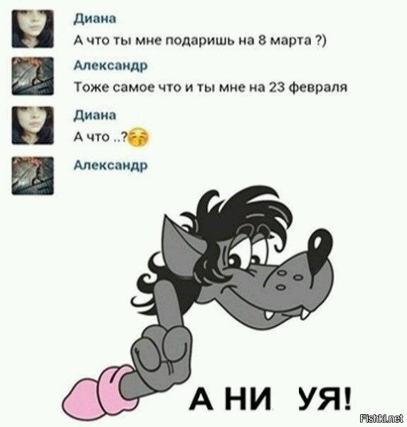 - А что бы ты измерила тот х*й, который подарила мне на 23 февраля