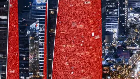 Красивое световое шоу от башен-близнецов Тяньфу, город Чэнду, Китай