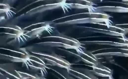 Это стая маленьких сомов, которые самоорганизуются в такие большие стаи для того, чтобы вместе находить пищу, а также отпугивать своих врагов массовым скоплением.