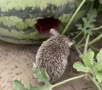 Ёж нагло жрёт арбуз. Такое вообще возможно?