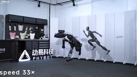 Phybot, компания созданная лишь год назад двумя недавними выпускниками пекинского Университет Цинхуа, выпустила модель гуманоида, который выполняет сальто назад с места.
