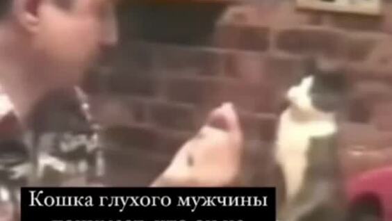 У него есть любимый котик, который понимает, что хозяин его не слышит, поэтому четырехлапый пытается общаться жестами