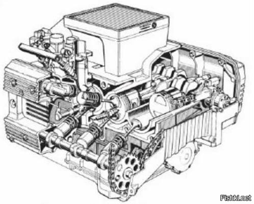 750-кубовой продольный 4-цилиндровый "рядник".