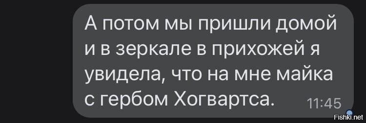 А потом мы пришли домой и в зеркале в прихожей она увидела, что кроме майки с гербом Хогвартса больше на ней ничего нет...