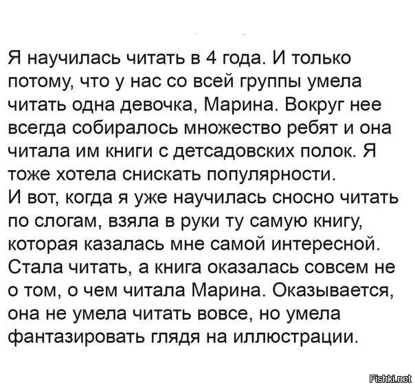 Я научился читать в два года, но не признавался в этом до поступления в школу. Квантовую физику я изучил к трём годам, но не признаюсь в этом даже выйдя на пенсию...