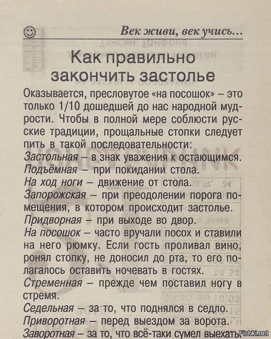 8) «ЗЕЛЬЕ ЖЕ ПИТЬ ВВОЛЮ, ПОНЕЖЕ НОГИ ДЕРЖАТ. БУДЕ ОТКАЖУТ – ПИТЬ СИДЯ. ЛЕЖАЩЕМУ НЕ ПОДНОСИТЬ – ДАБЫ НЕ ЗАХЛЕБНУЛСЯ, ХОТЯ И БЫ И ПРОСИЛ. ЗАХЛЕБНУВШЕМУСЯ ЖЕ СЛАВА! ИБО СИЯ СМЕРТЬ НА РУСИ ИЗДРЕВЛЕ ПОЧЕТНА ЕСТЬ».