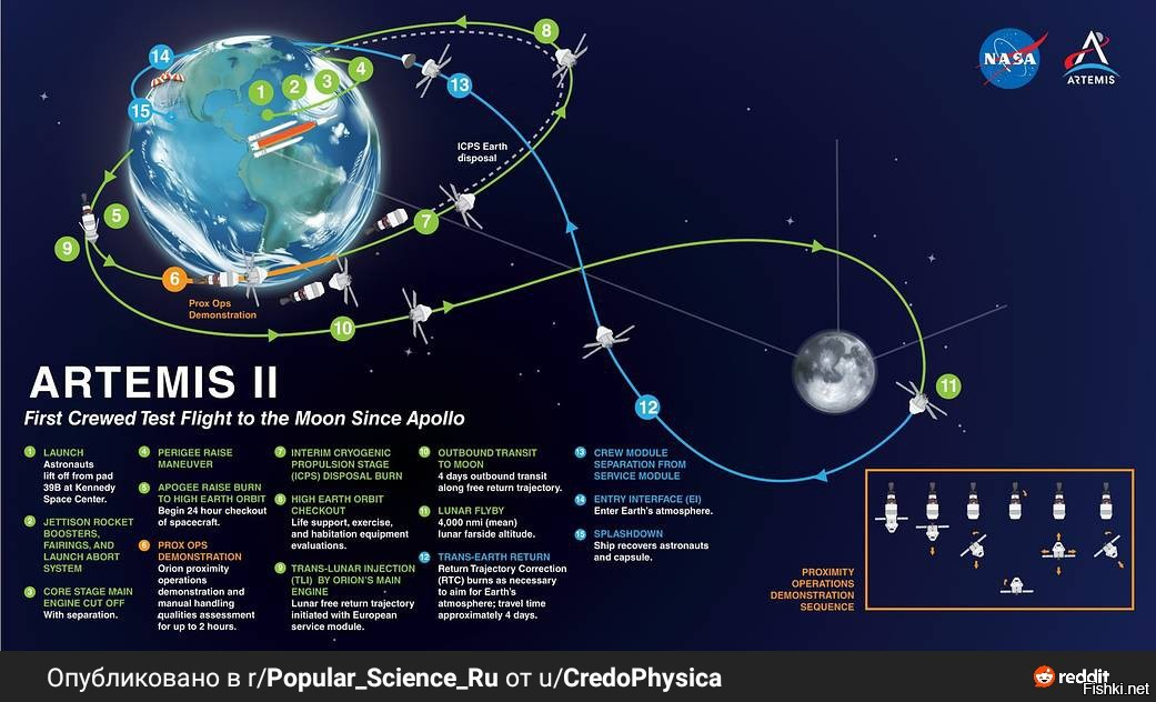 В феврале 2026 года люди впервые за 54 года покинут орбиту Земли (Миссия Artemis II)