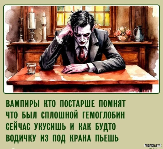 Сейчас слушаю книжку, там концепция другая. Вампир, если долго не употребляет кровь, стареет, дряхлеет, но не умирает, а превращается в высушенную живую мумию. Стоит соснуть - и начинает наполняться жизнью и с каждым употреблением становится моложе и красивее... По сюжету там его так мучали годами в темнице, а потом выпустили на задание.