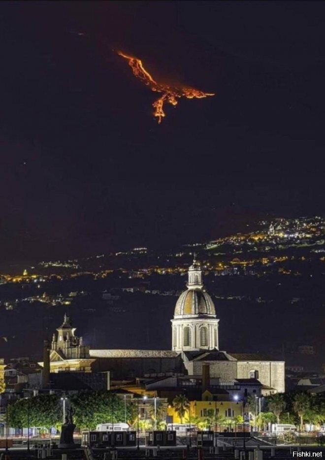 Для тех, кто тоже задался вопросом: "А что это, где и почему?" – во время извержения вулкана Этна на Сицилии в небе появилась огненная иллюзия феникса: струи лавы, клубы дыма и светящееся облако пепла сложились в форму мифической птицы.