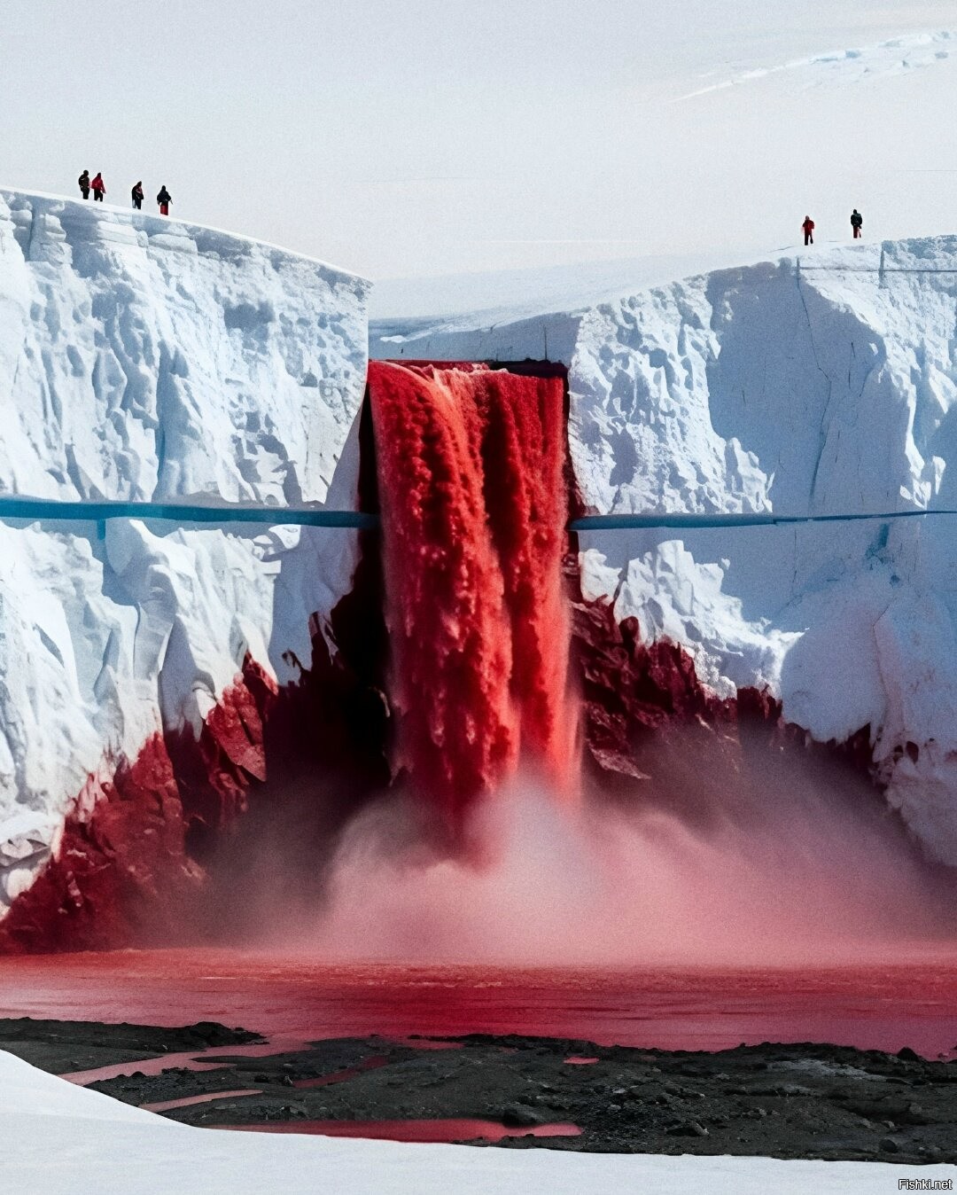 Это поток воды кроваво-красного цвета, который вытекает из ледника Тейлора в Сухих долинах Мак-Мердо.