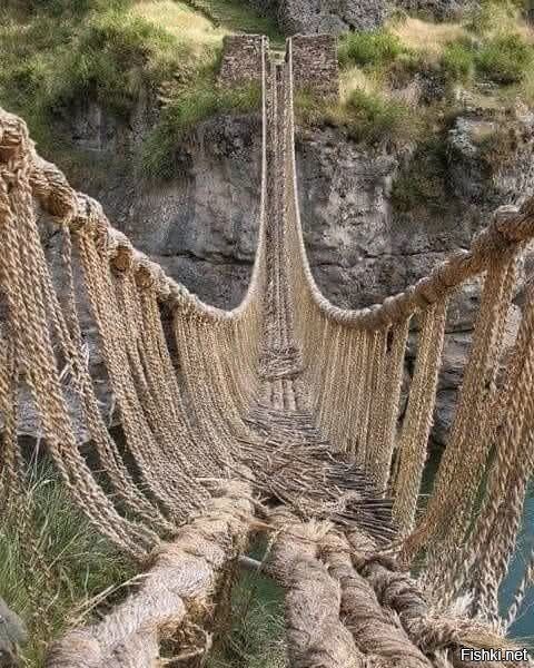 Мост К’эсвачака. Последний сделанный по технологии инков ( последние инкские рухнули ещё в XIX веке). Этот поддерживается в рабочем состоянии общиной кечуа.