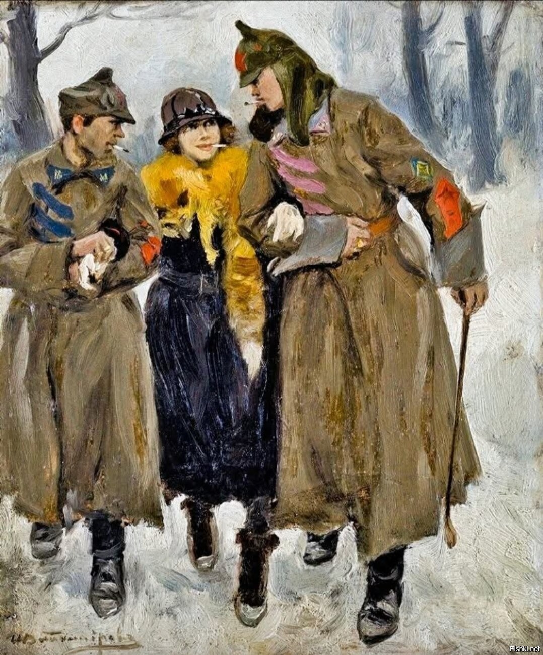 «Красноармейцы с проституткой». 1920 год. Художник Иван Алексеевич Владимиров (1869-1947)