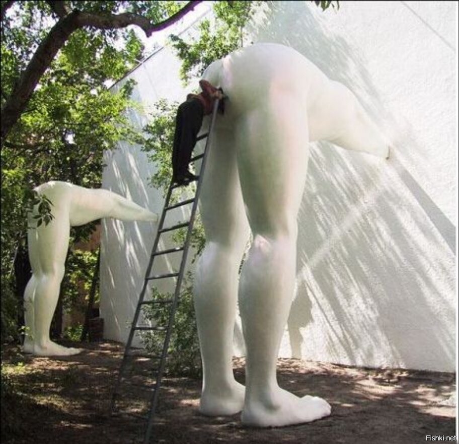 Мужика на верхнем фото наняли скалывать лёд и с работой он справился на отлично...