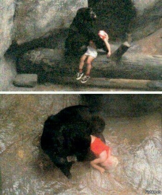 Трёхлетний мальчик упал с высоты около пяти метров прямо в вольер с гориллами и потерял сознание.