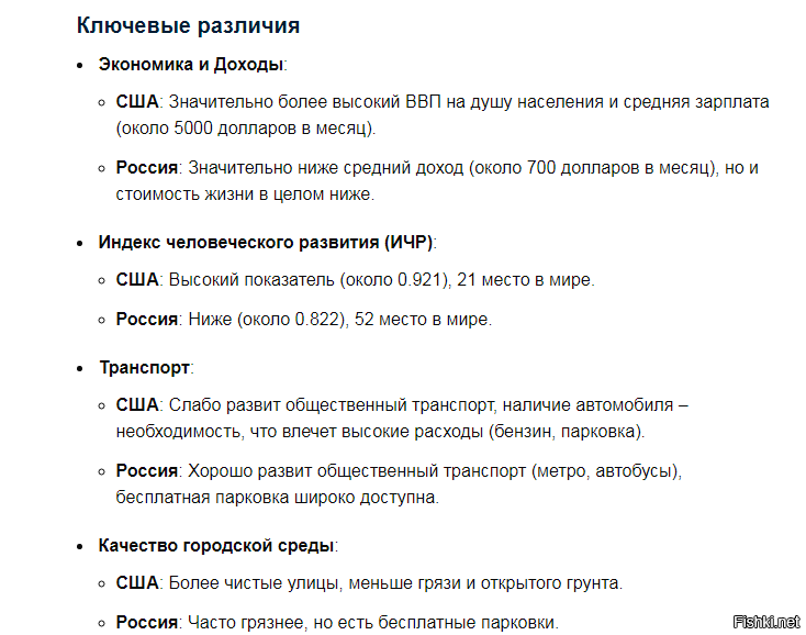 в США все хорошо зарабатывают. Рабочий получает зарплату, например, 3000 долларов в месяц. Потом он платит 1500 долларов за аренду квартиры, потому что хозяин тоже хорошо зарабатывает. У рабочего ломается машина, он платит 2 тысячи долларов механику, потому что тот тоже хорошо зарабатывает. Рабочий покупает хлеб, так как пекарь тоже хорошо зарабатывает. За детский сад уходит 800 долларов в месяц, учителя тоже хорошо зарабатывают. Потом рабочий платит налоги, так как государство тоже хорошо зарабатывает. В конце месяца у рабочего, учителя и механика остаётся мало денег, но все вокруг хорошо зарабатывают!