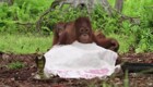 Сотрудник реабилитационного центра учит детенышей орангутанов бояться змей