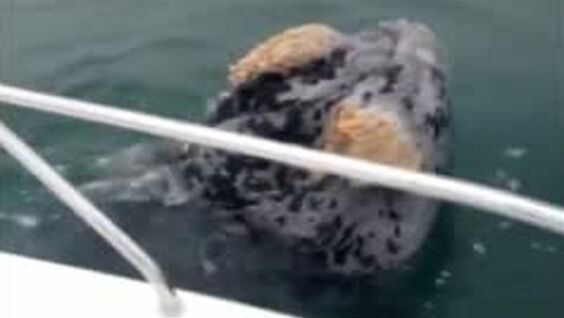 Огромный кит подплыл к рыбацкому катеру, чтобы спросить как проходит рыбалка