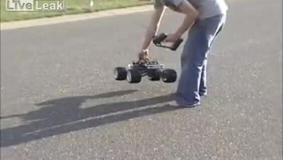 Маленькая машинка на пульте сбивает с ног взрослого мужика