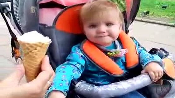 Малыш пробует свое первое в жизни мороженое - такое надо всегда на камеру снимать, чтобы повзрослев посмотреть :)