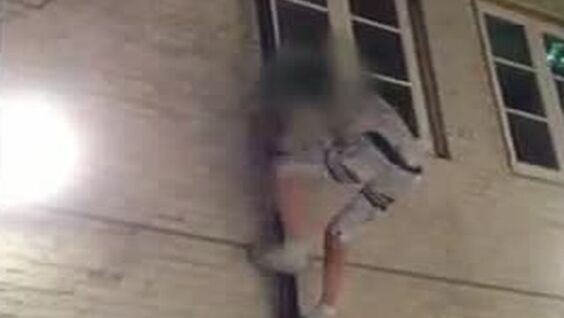Мужик в пижаме в стиле Звездных Войн карабкается на крышу дома по водостоку, а затем жестко падает на асфальт