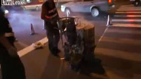 С помощью такого необычного устройства в Китае рисуют зебру на дорогах, а не как у нас - обычной краской, которая стирается через несколько месяцев