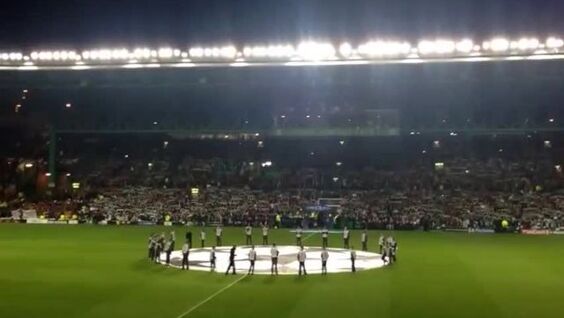 60000 болельщиков шотландской футбольной команды Celtic запевают свою традиционную песню "You'll never walk alone" на стадионе Celtic Park перед матчем группового этапа Лиги Чемпионов против испанской Барселоны
