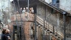 Мужчина карабкался по складной лестнице, однако в какой-то момент оступился. Момент падения мужчины в пруд с рыбой попал на видео.