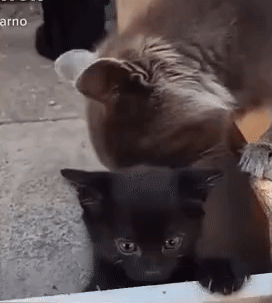 Коты решили выяснить отношения у входа в подъезд многоквартирного дома. Их разборки прервала жительница дома. Девушка попросила у котов разрешения пройти.