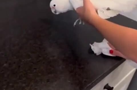 Похоже, пернатый очень хотел получить вкусняшку за помощь в уборке.