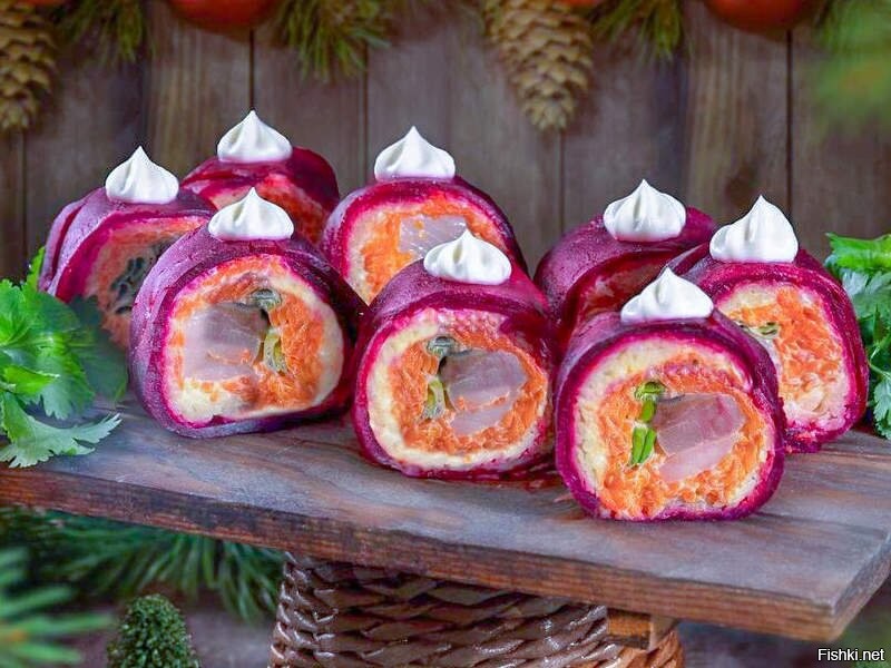Вот когда селёдку под шубой крутят роллом это ярко, красиво и для фуршета удобней, чем ложкой с общей тарелки.