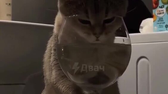 Кошечка пьет воду из бокала, но делает это очень элегантно. Чтобы бокал не упал, она придерживает его пушистой лапкой. Ничего милее сегодня уже не будет.