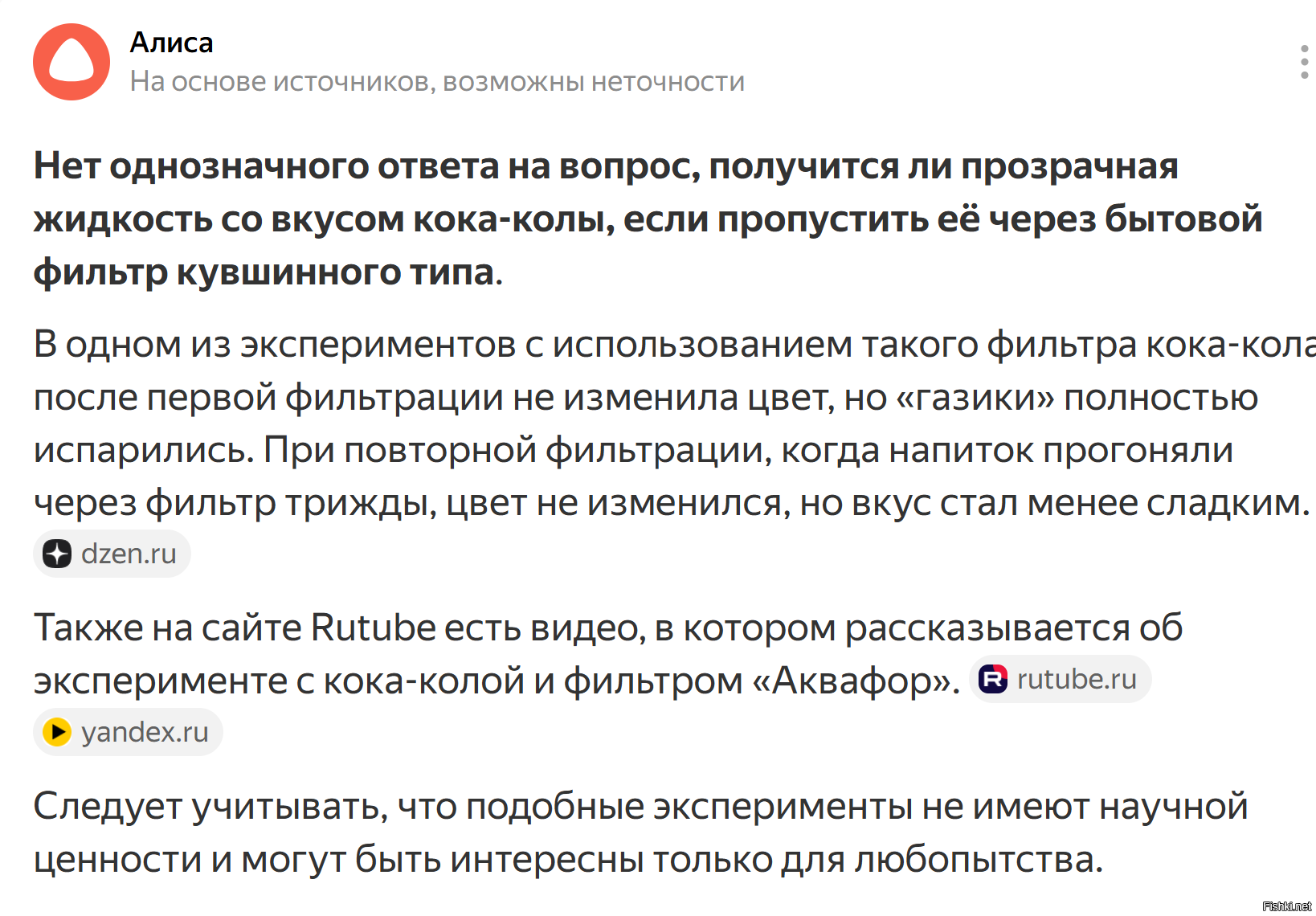 В эксперименте дебилы избавились от лёгкого привкуса сивушных масел, которые часто и являются основной фишкой многих фирменных напитков.