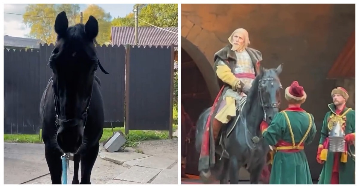 Конь с характером и боязнью дверей неожиданно становится звездой оперы. Сначала коневоз и лифт, потом сцена и аплодисменты.