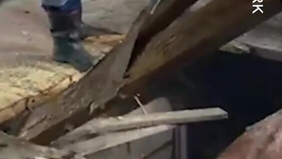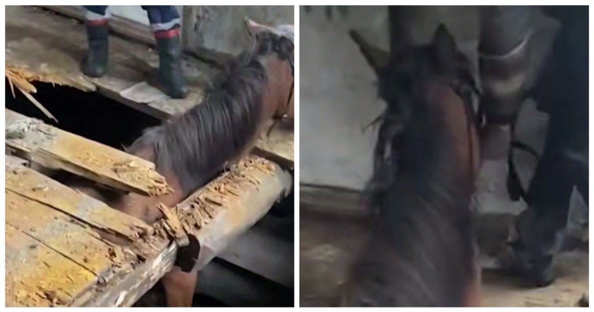 Спасатели осторожно надпилили доски пола, пока хозяин успокаивал и придерживал своего подопечного. В освободившемся проеме животное смогло подпрыгнуть и выкарабкаться из ямы.