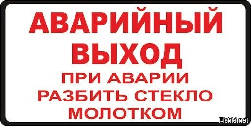 4. Табличка красная - это "Аварийный выход. При аварии разбить стекло молотком"