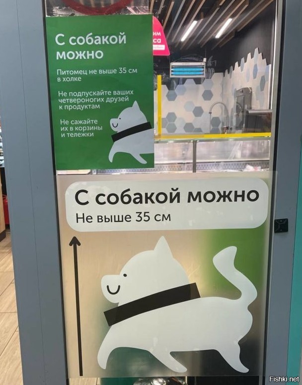 Сделали зачем-то бред какой-то, собаки до 40 см или что-то в этом роде, могут заходить в магаз, другие нет. Ну сделайте для всех одно: собакам вход в продовольственные магазины, а тем более магазины самообслуживания (где есть полки почти на уровне пола) запрещен! Всем! Но нет же, заводят своих собаченций, еще и без поводка, как на видео, те ходят, нюхают все продукты, фу пля! Но и руки распускать тоже конечно не супер, особенно на женщину.