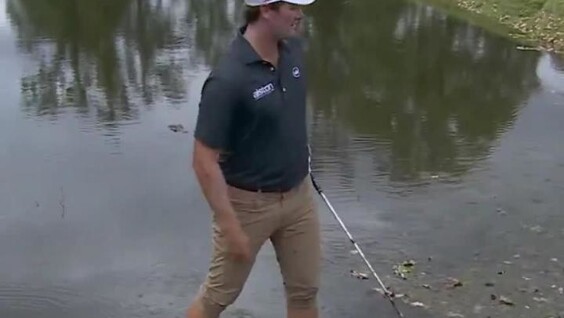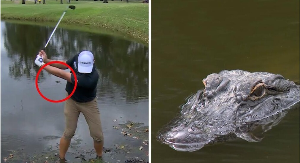 Наблюдательная рептилия попала на видео во время турнира PGA Tour Sanderson Farms. На 11-й лунке поля в Джексоне мяч игрока угодил в водную преграду, Винсу Уэйли пришлось выйти на мелководье, но он оказался там не один – из-под воды за ним следил хищник.