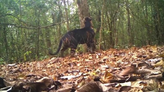 Камере-ловушке удалось заснять редкого «чёрного» тигра, который обладает псевдомеланистическим окрасом. Эти хищники настолько редки, что за последние 30 лет их видели менее 10 раз. Но теперь вы тоже знаете, как они выглядят