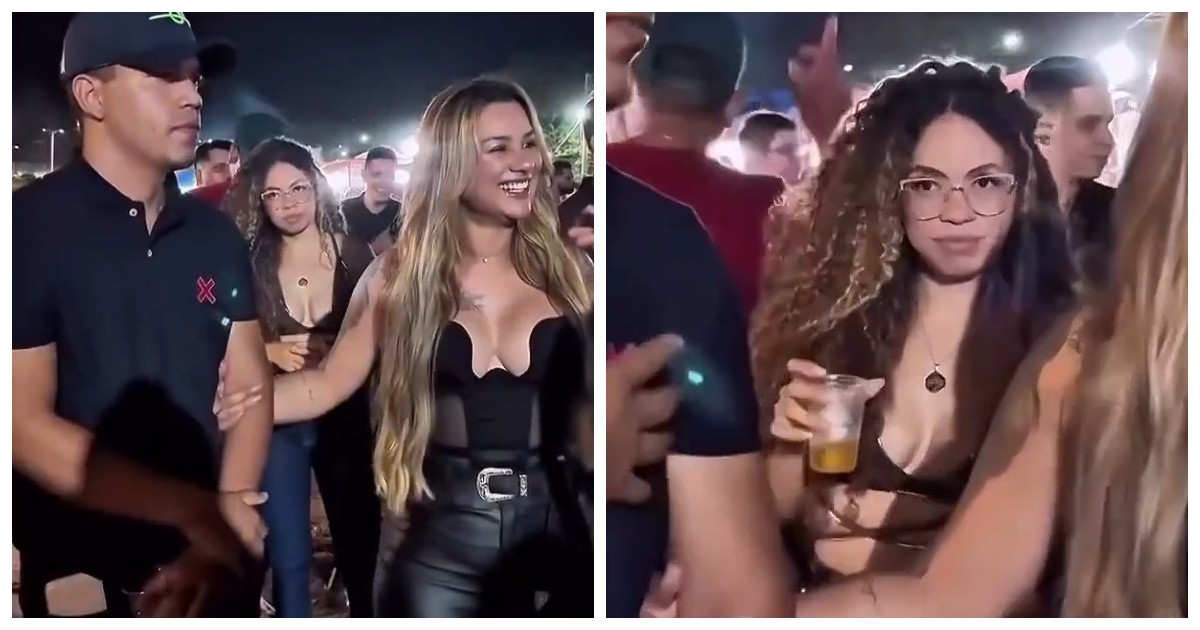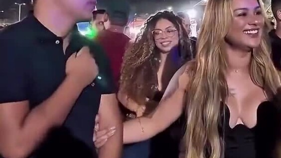 Мужчина стоит в объятиях своей девушки, но его внимание невольно привлекает другая милая особа. Видео показывает естественные человеческие реакции и моменты, когда сосредоточиться полностью бывает непросто.