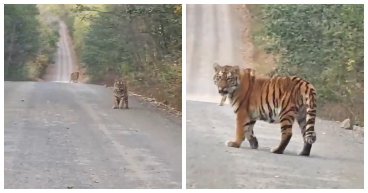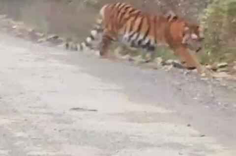 - Тигр вышел на дорогу и начал преследовать автомобиль