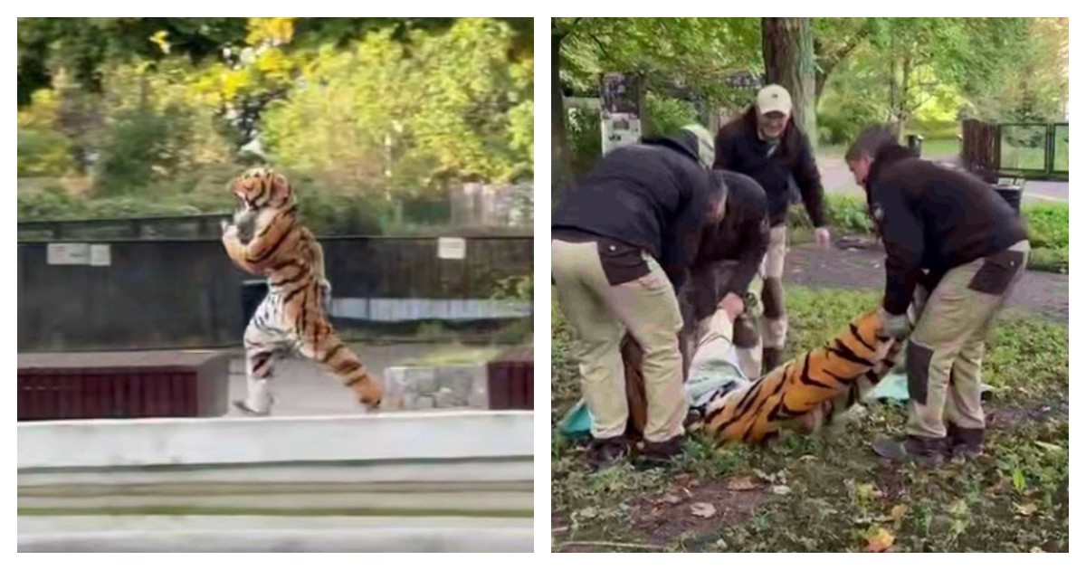 - Актер исполнил роль тигра во время учений в японском зоопарке