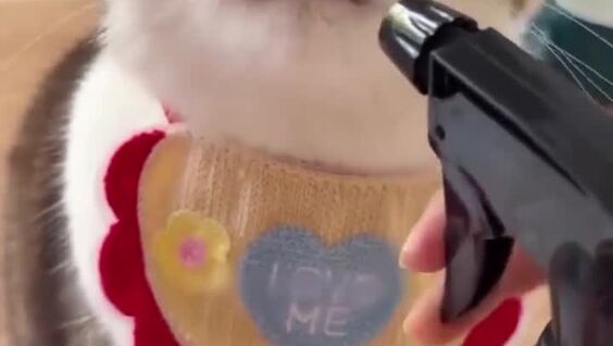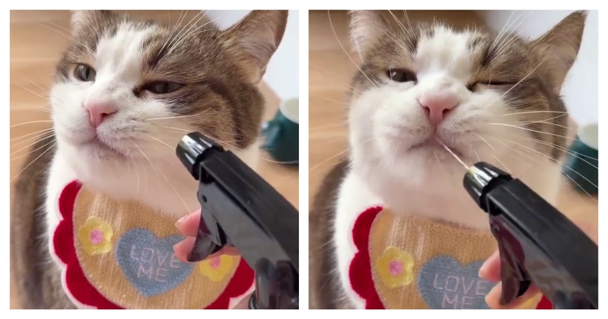 Кошка обожает, когда хозяйка поит её водой с помощью пульверизатора. Питомец наслаждается каждой каплей.