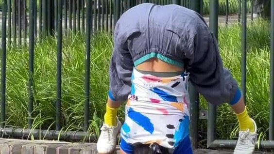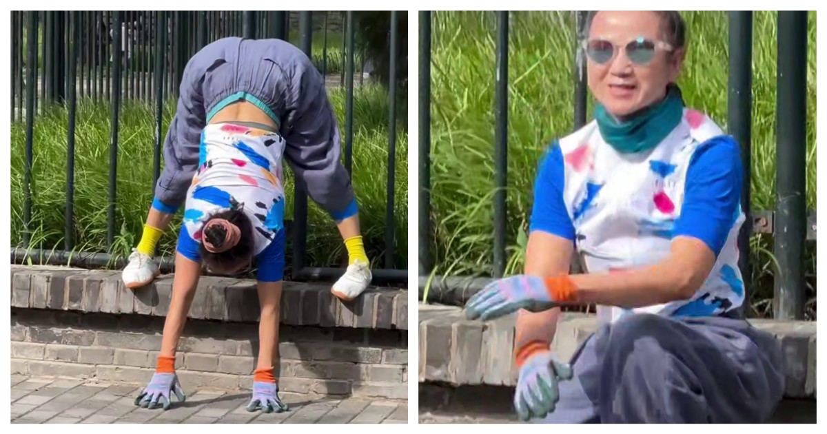 Немолодая жительница Китая, разминающаяся в пекинском парке, удивила российских туристок.