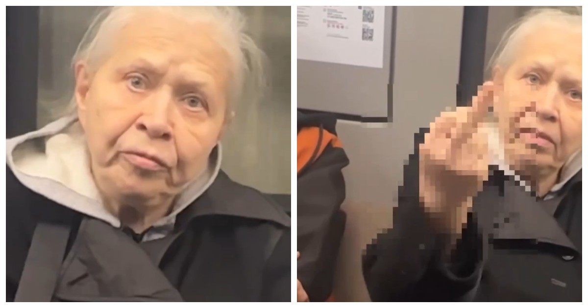 Пожилой пассажирке не уступили место — в ответ женщина сорвалась, начала кричать, называть окружающих «животными» и «свиньями», а затем показала неприличный жест.
