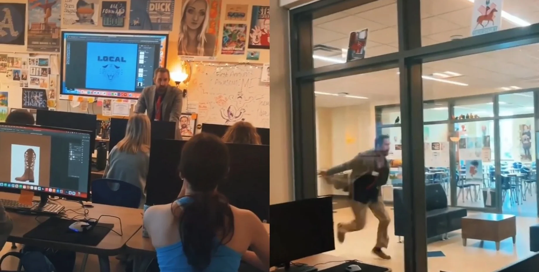 Учитель старшей школы в США проводил урок для старшеклассников, как вдруг после звонка он внезапно выбежал в коридор в забавной позе. Подростки и пользователи не сдерживали смеха от ситуации, которая оказалась пранком.