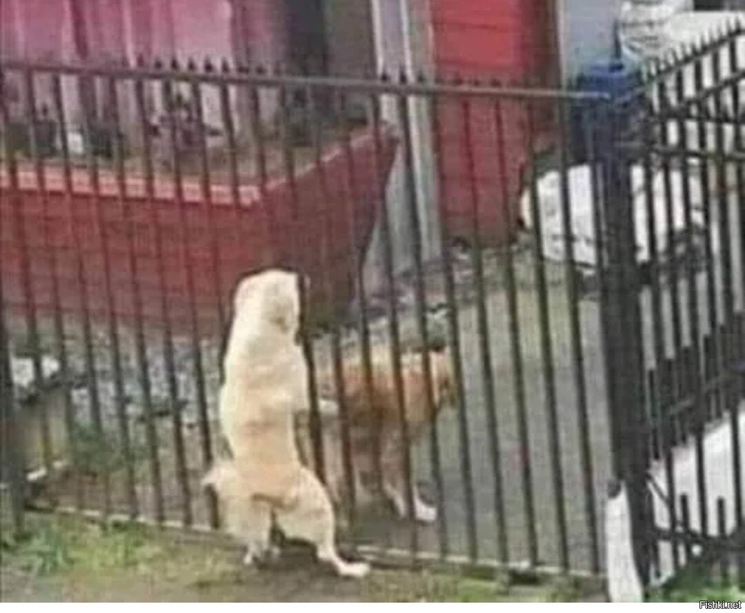 Пёс нашёл себе пару и решил с ней уединиться. Однако их акту любви помешало препятствие.