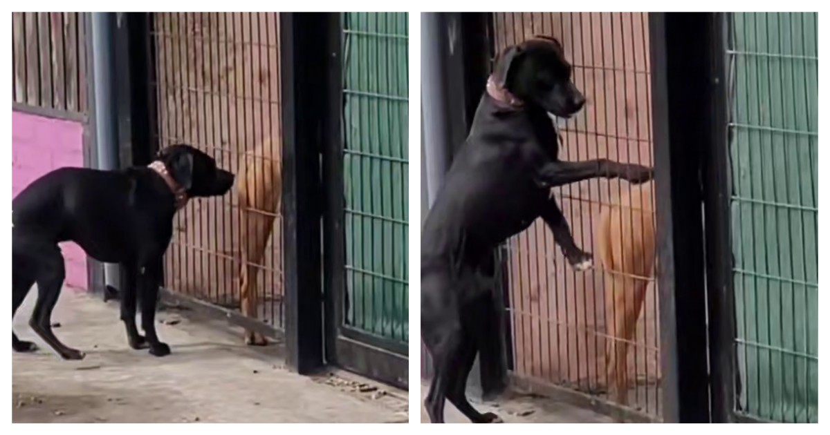 Пёс нашёл себе пару и решил с ней уединиться. Однако их акту любви помешало препятствие.