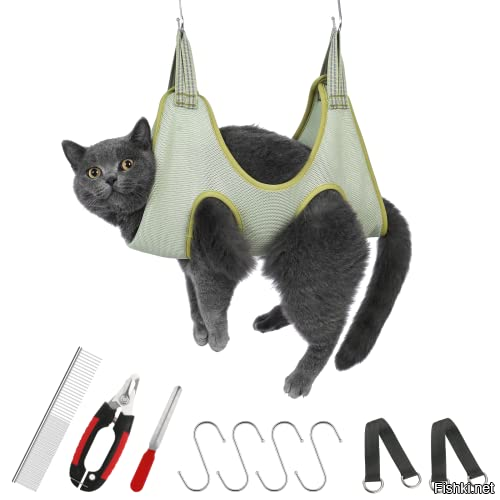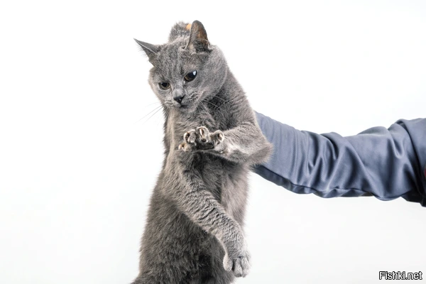 держу крепко за шкирку, а он испуганную кошу за лапы хватает